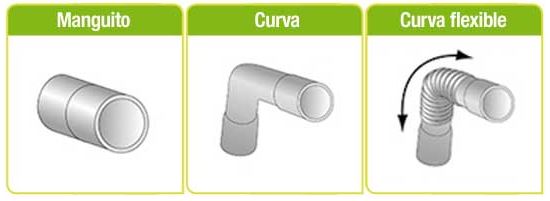Necesitará accesorios específicos para los cambios de dirección (codos, manguitos, derivaciones en T…).