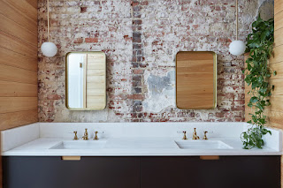 Parte de las paredes de los dormitorios y las que se han creado nuevas, se han revestido con listones de madera natural dispuestos en horizontal. Como si quisieran generar un contraste con las inmensas paredes de ladrillo y aportar calidez y un aire colonial, acuerde a la edad de la casa. Es más; todo el mobiliario (sofá, sillas...), así como los accesorios (grifos o lámparas) tienen un aire vintage o "retro" que parece respetar la edad de la casa.