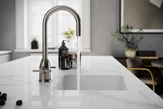 Integrity Q está disponible inicialmente en dos colores, Blanco Zeus y Calacatta Gold, y es ideal para combinar con encimeras de Silestone® u otros materiales.
