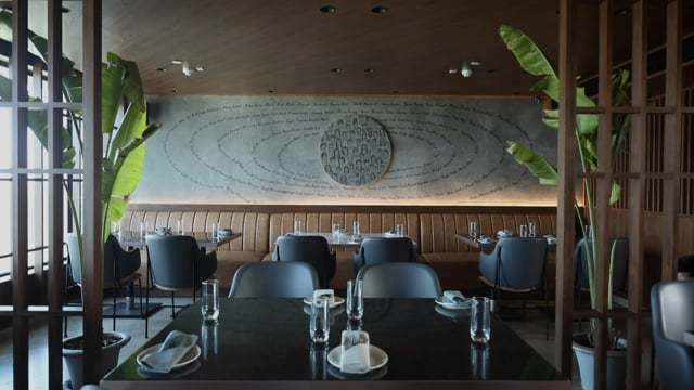 Del mismo modo, la concentración de barras se acumuló en el otro extremo del espacio para crear un equilibrio de energías y garantizar que el espacio de los asientos se fusionara con el bar clandestino y los asientos de la barra. El diseño del restaurante está en equilibrio con el esquema culinario y de bar. La cocina actúa como el elemento unificador que une la barra para formar un espacio puro que puede parecer visualmente complejo pero sigue una facilidad de movimiento a través del espacio. El resultado es una experiencia que fomenta la unión.