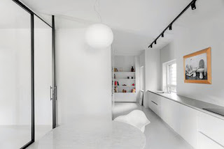 El apartamento gira alrededor de un eje central sin límites físicos que divide las zonas públicas y privadas.